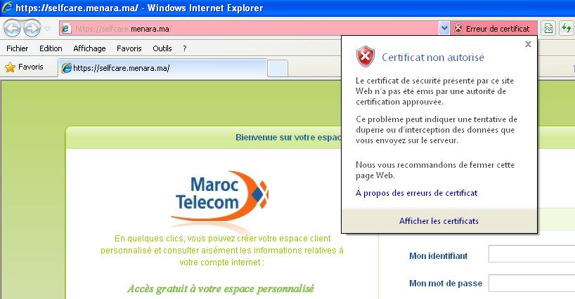 اتصالات المغرب لا تستخدم طبقة الاتصال الآمن المرخص SSL